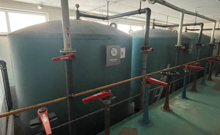 - Sand getauscht, Filter gereinigt und gestrahlt, Filterdüsen erneuert 400 Stk./Filter