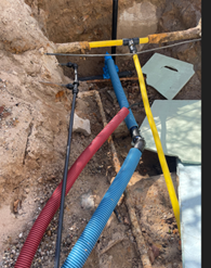 - Stromkabel zur stabileren Versorgung mit Strom vom Stromverteiler (Pumpenhaus) zu dem Dusch/Umkleideräumen verlegt